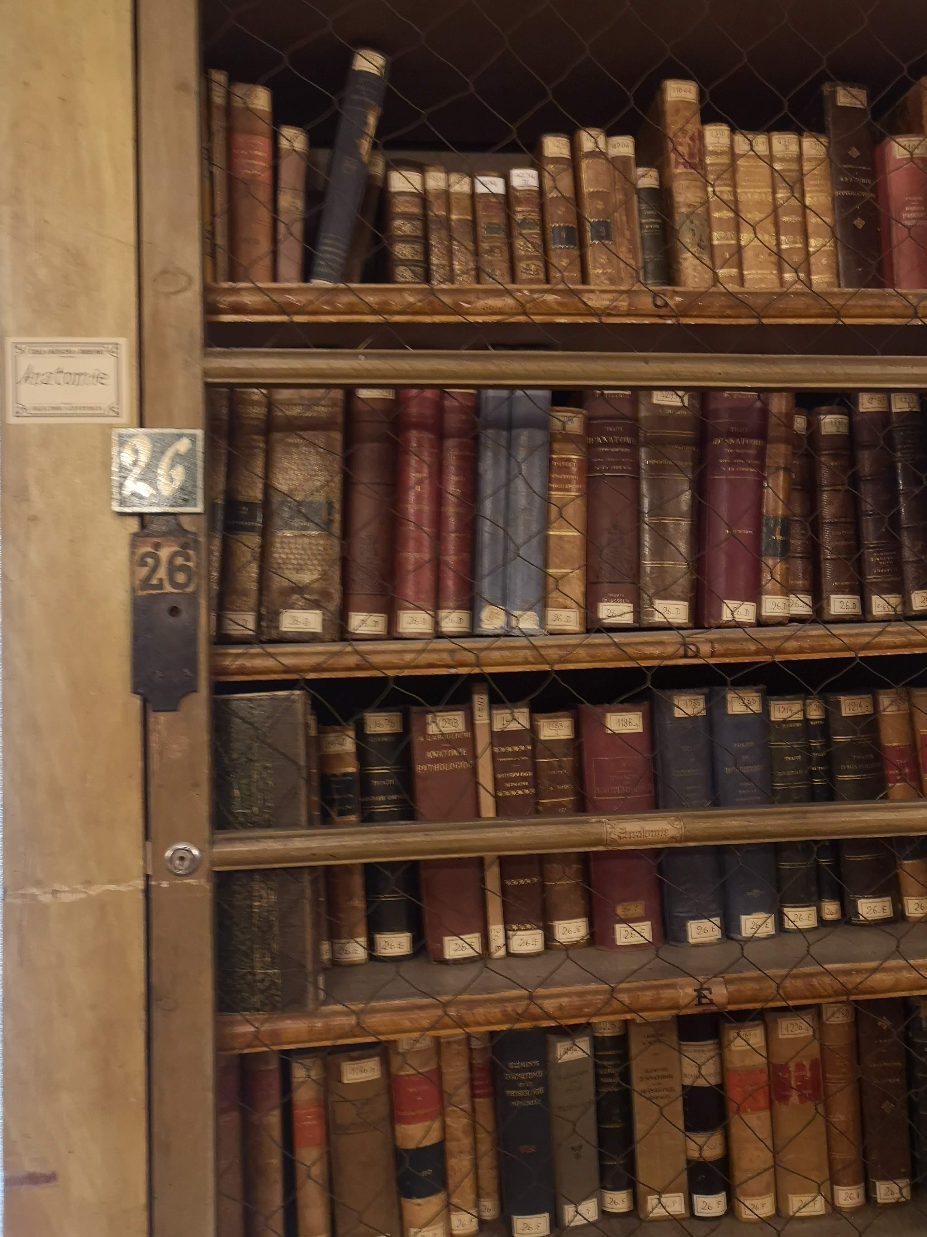 Superbe bibliothèque avec de magnifiques livres anciens dont la première encyclopédie française du siècle des lumières de Diderot et d'Alembert. Deux très belles tables ovales gigantesques. J'ai moins apprécié l'étage supérieur avec des écorchés, des êtres difformes,.. mais c'est habituel dans ces écoles de médecine pour faire évoluer cette science. Très intéressant par contre, de voir les ustensiles utilisés à cette époque et de les comparer avec les actuels.. Nous avons de la chance !