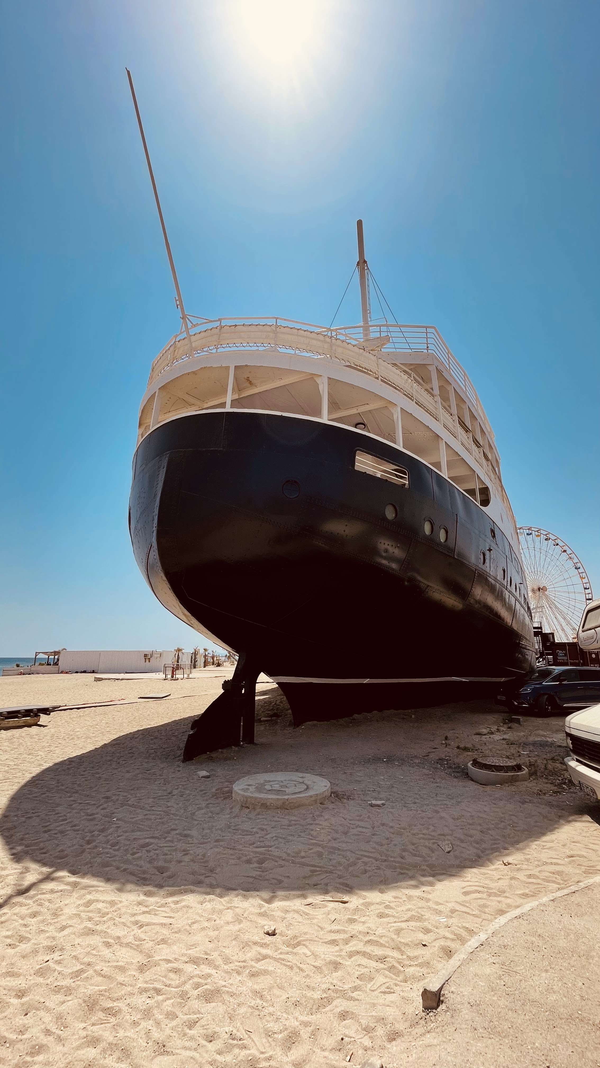Posté le 15/07/2023 à 12:31"Un beau paquebot installé sur la plage mais malheureusement non exploité. Il est dommage qu'aucune activité n'ait été mise en place à l'intérieur (bar, restaurant, casino, musée ?). Et aucune possibilité de le découvrir à l'intérieur puisqu'il n'est pas proposé à la visite. Du moins cet été."