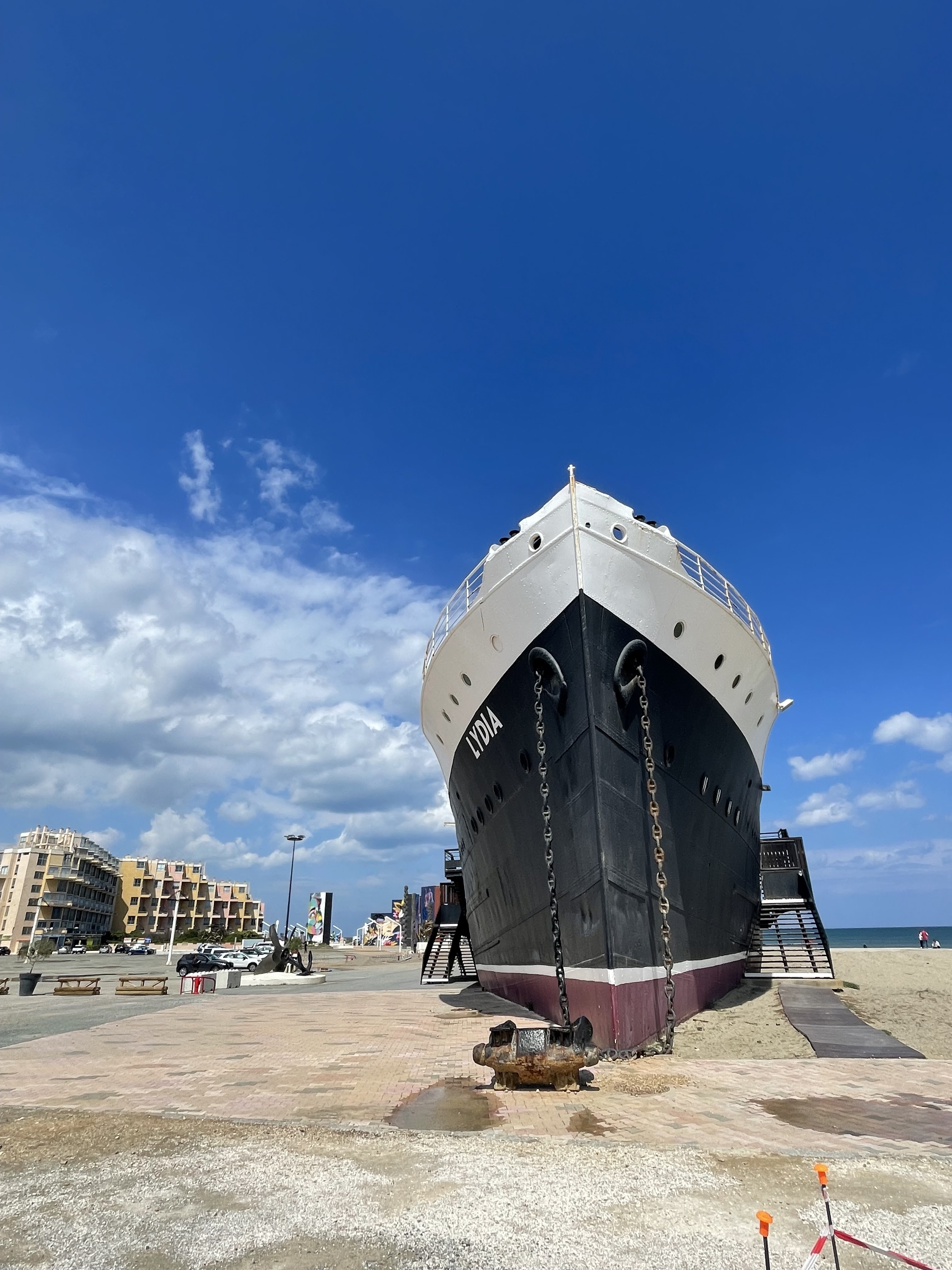 Posté le 02/03/2021 à 13:31"Prêts pour un voyage immobile? Avec ses 91m et 2700 tonnes, le Lydia n'est pas près de reprendre la mer. Il est ensablé près de la plage du Barcarès depuis 1967 🤡. Des scènes du film l'Alpagueur avec JP Bemondo y ont été tournées. L'hélice sur la place (photo) est probablement la sienne. Fermé en ce moment. Une curiosité unique en Europe. En décembre, chaque année, le gigantesque marché de Noël occupe toute la place devant le Lydia. Mais en décembre 2020, pas de marché de Noël... jusqu'à ce que la situation compliquée s'améliore..."