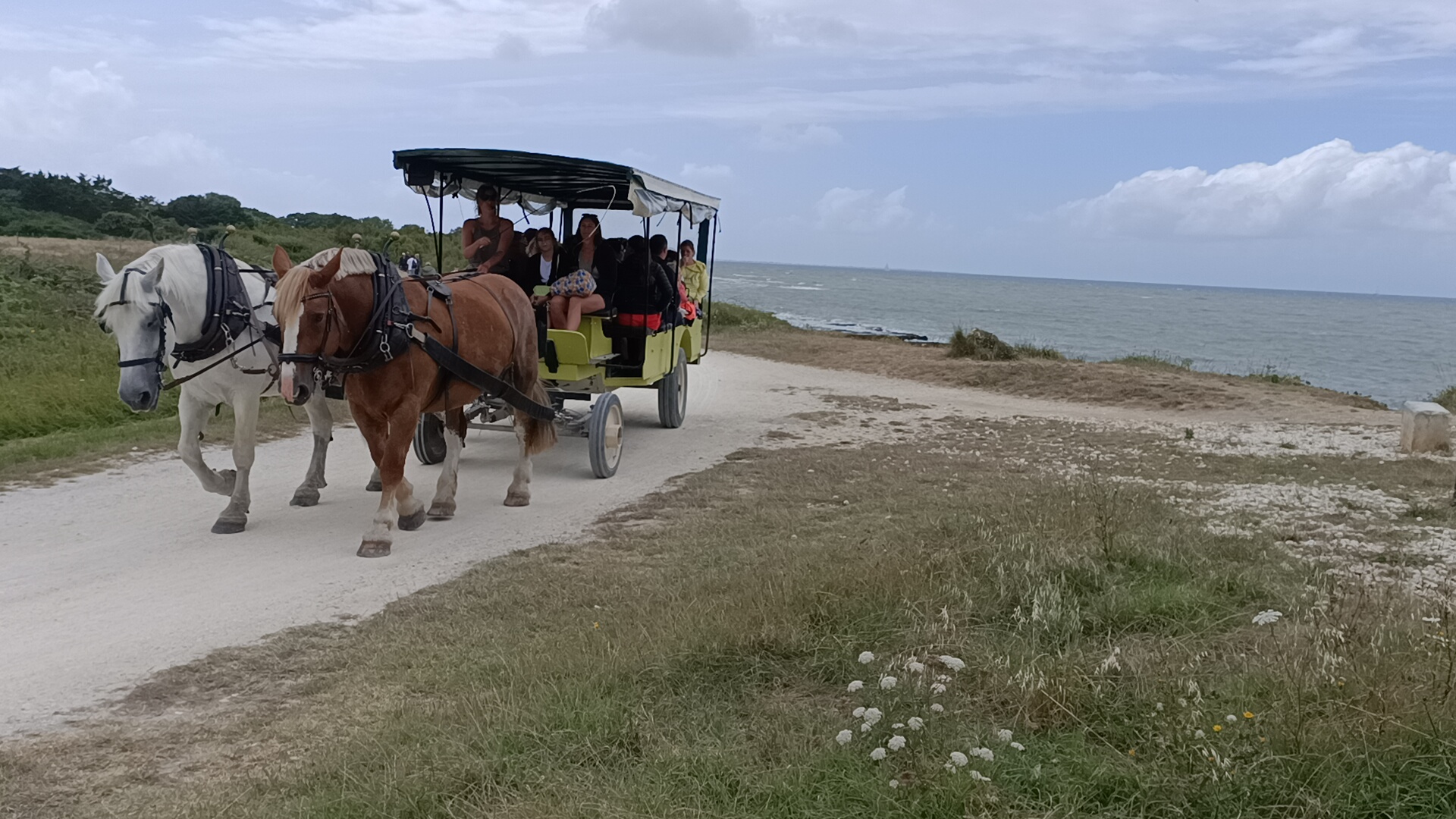 Posté le 10/07/2021 à 13:33"Hier 13 juillet, après une bonne averse, nous nous sommes retrouvés à 11h au départ de la calèche; accueil sympathique, balade d'une heure commentée par Patrick, Quenotte a bien obéi à Patrick, nous avons appris pas mal de choses. Finalement, c'est utile de faire le tour de l'île en calèche, puis d'aller déjeuner à midi et consacrer l'après-midi à compléter la visite à pied. Et encore merci à Patrick d'avoir pu converser quelques instants avec nos amis américains en anglais."