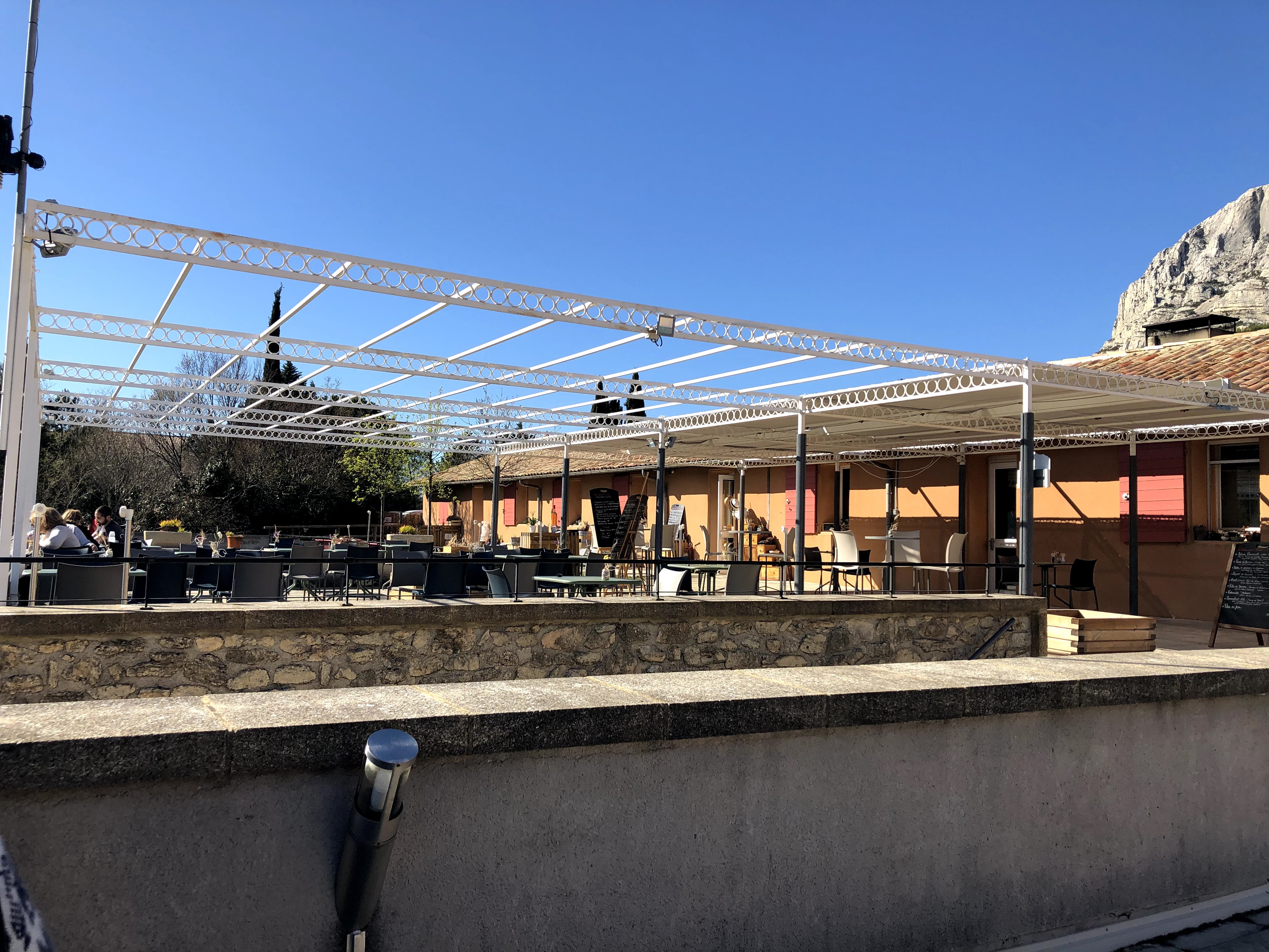 Très bel endroit pour découvrir Sainte Victoire, restaurant non testée mais qui donnait envie, arrivés trop tôt dans la matinée. Point de départ avec parking gratuit pour randos autour de la Sainte Victoire